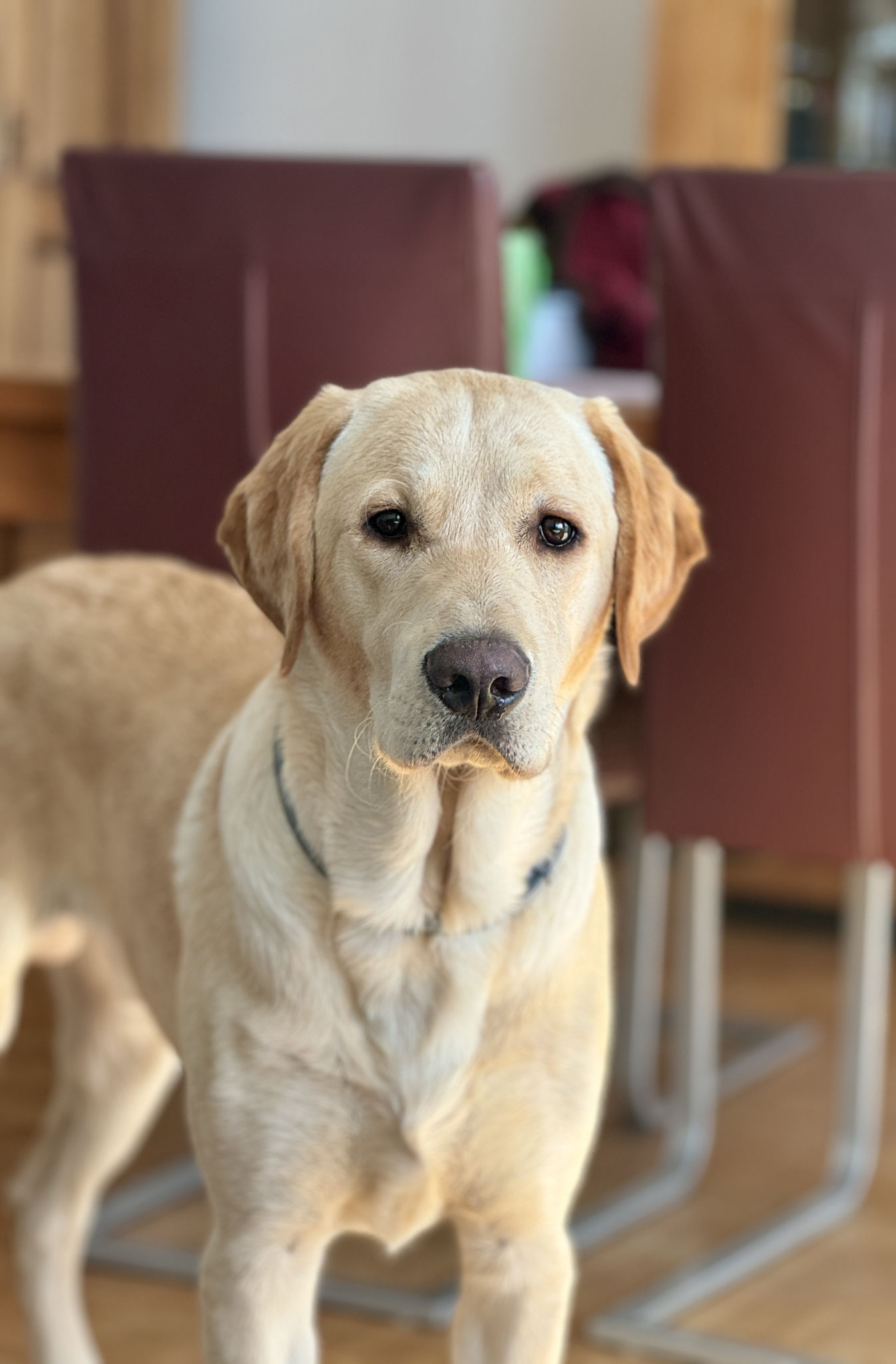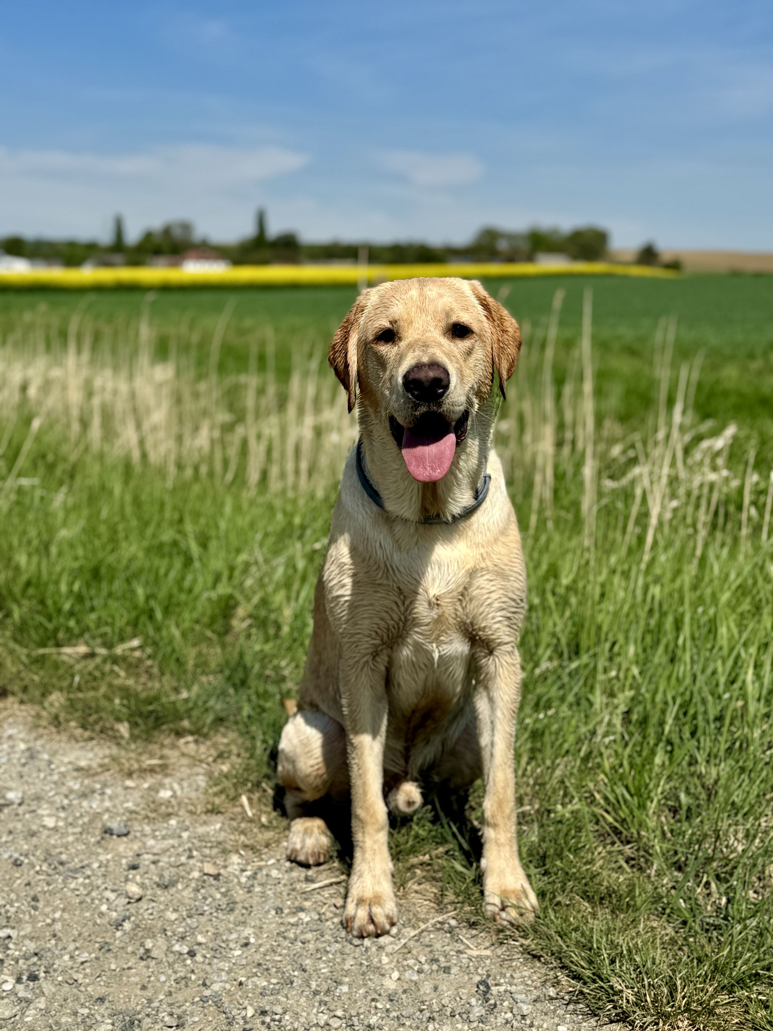Gunner ist ein absolut unkomplizierter, in sich ruhender und aufgeschlossener Junghund. Neue Situationen meistert er mit einer Selbstverständlichkeit, geht offen auf alle Menschen zu und erkundet mutig die Welt. Er ist immer in meiner Nähe und seine Gelassenheit erstaunt mich immer wieder aufs Neue.