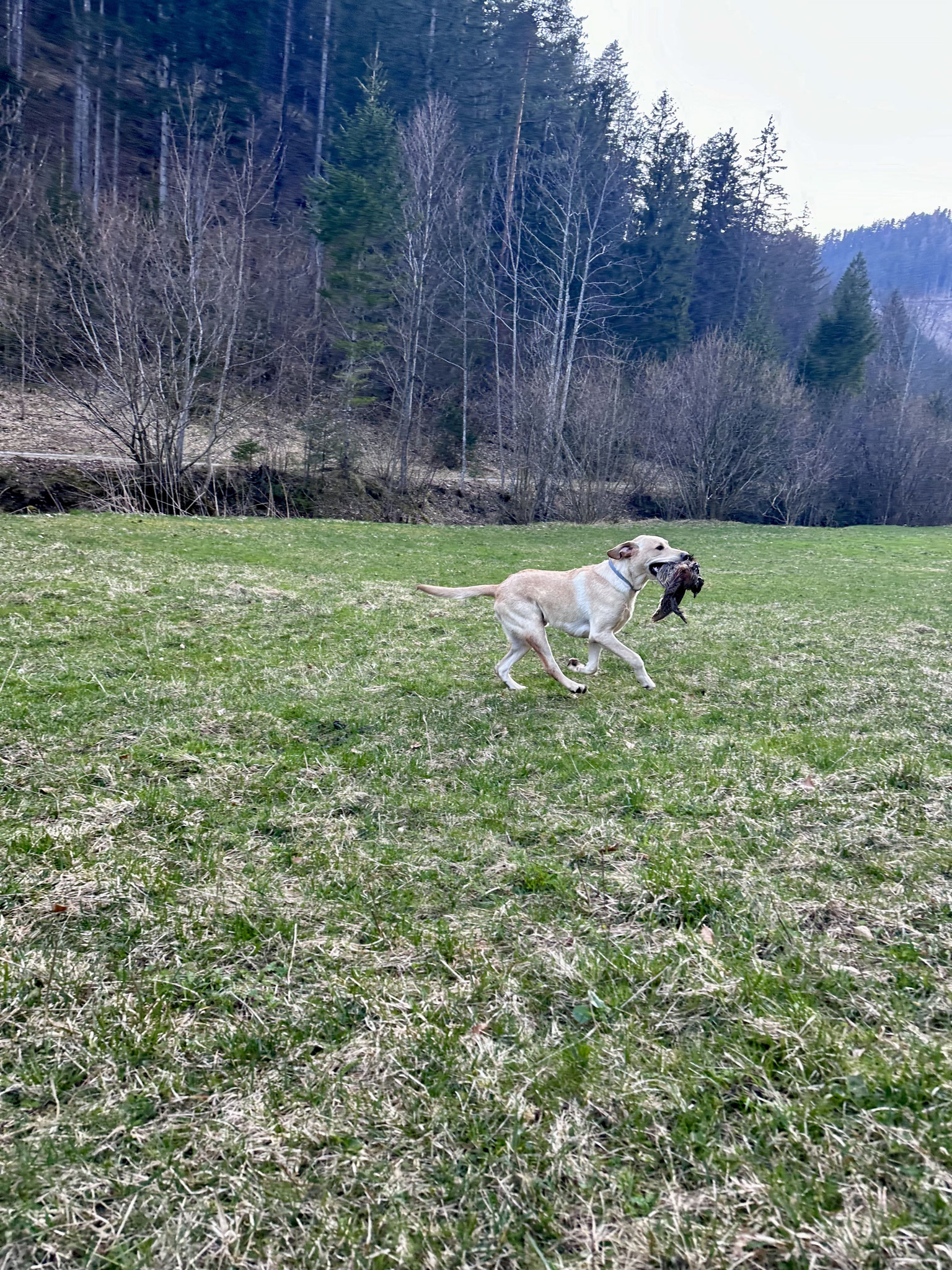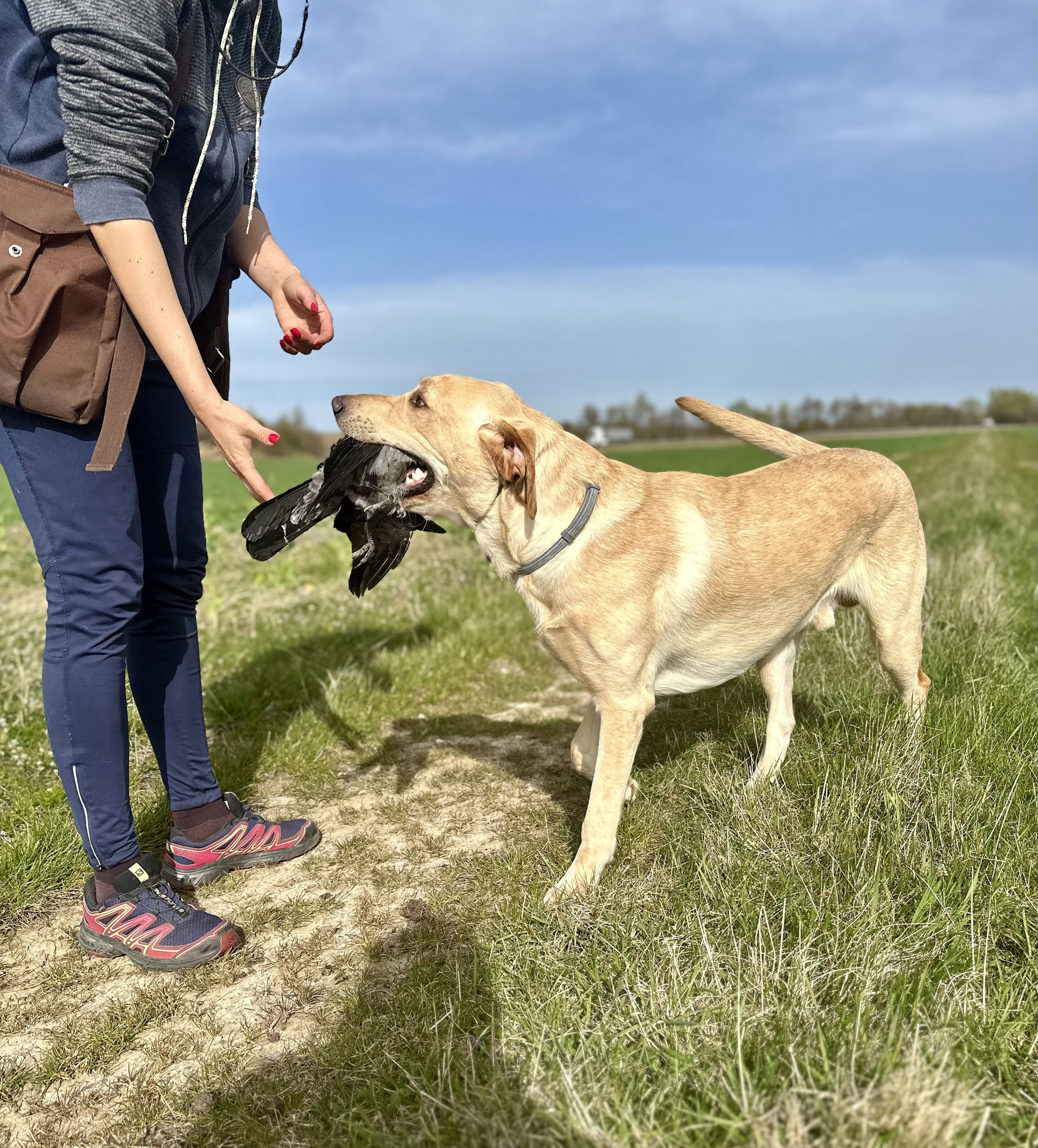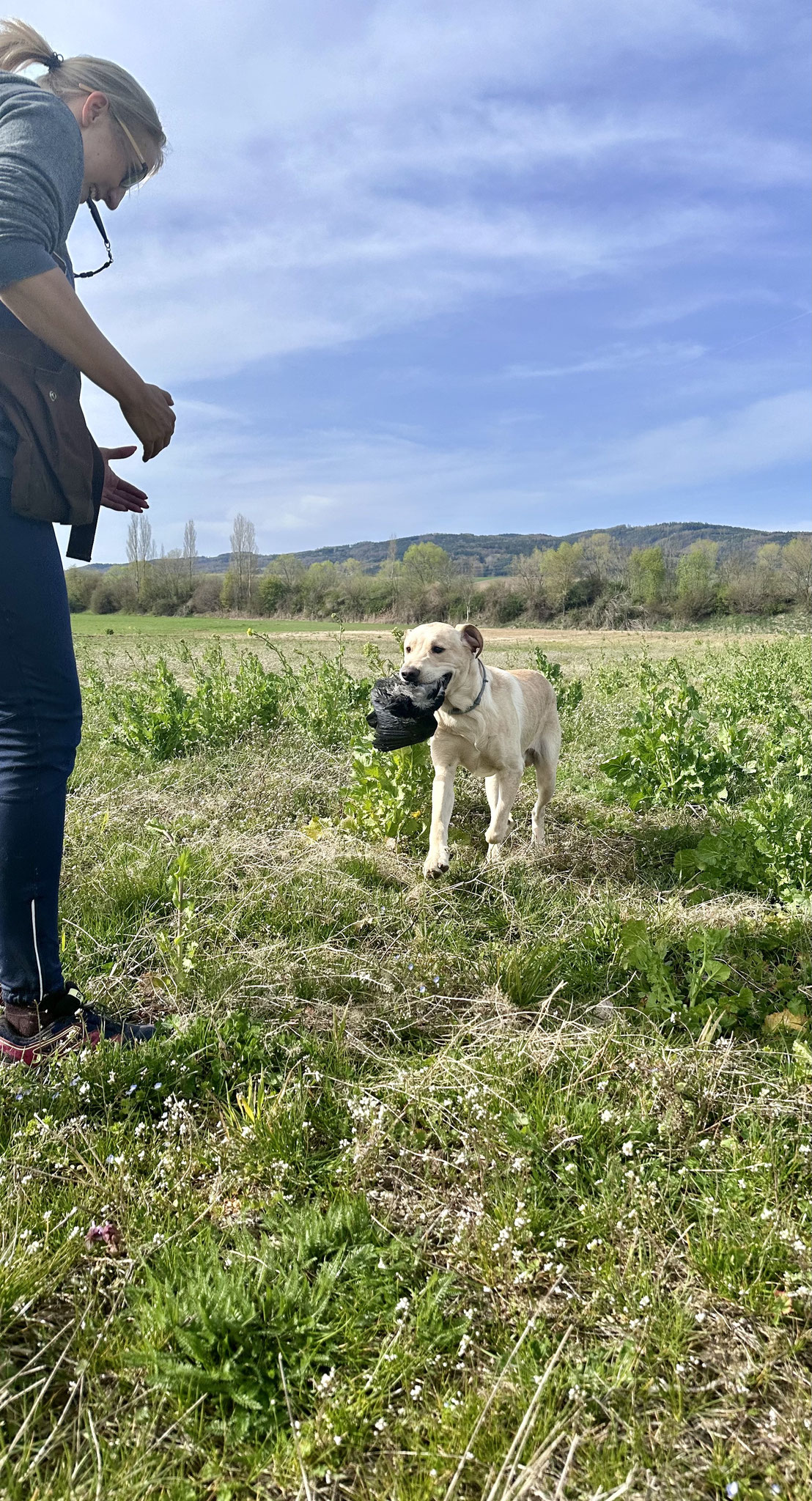 Eine enorme Geländehärte zeichnet ihn bei der Arbeit aus und ein hohes Maß an Führigkeit. Ich genieße die Ausbildung von ihm sehr, da bis jetzt alles sehr selbstverständlich verläuft und es einfach Spaß macht mit ihm zu arbeiten.