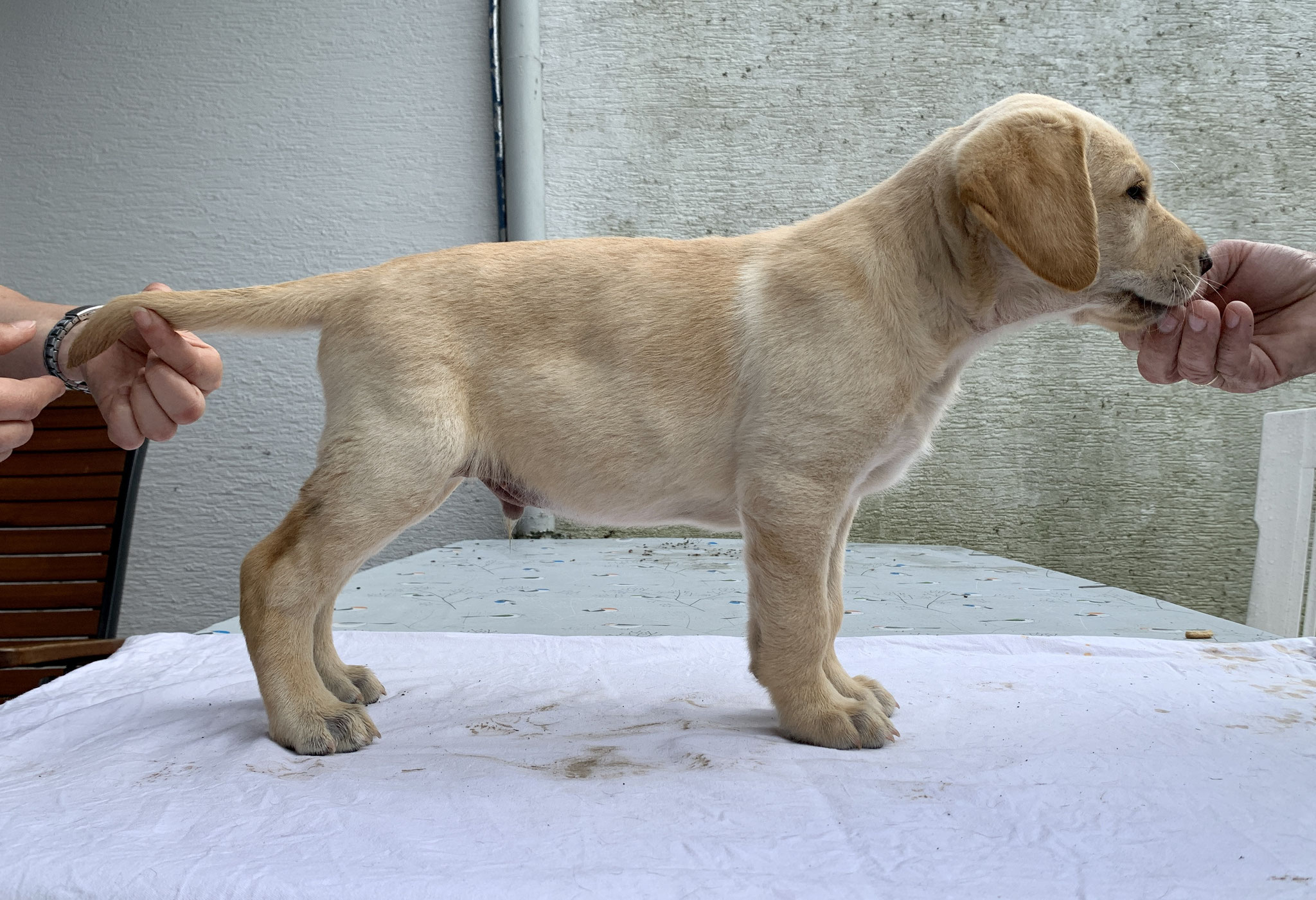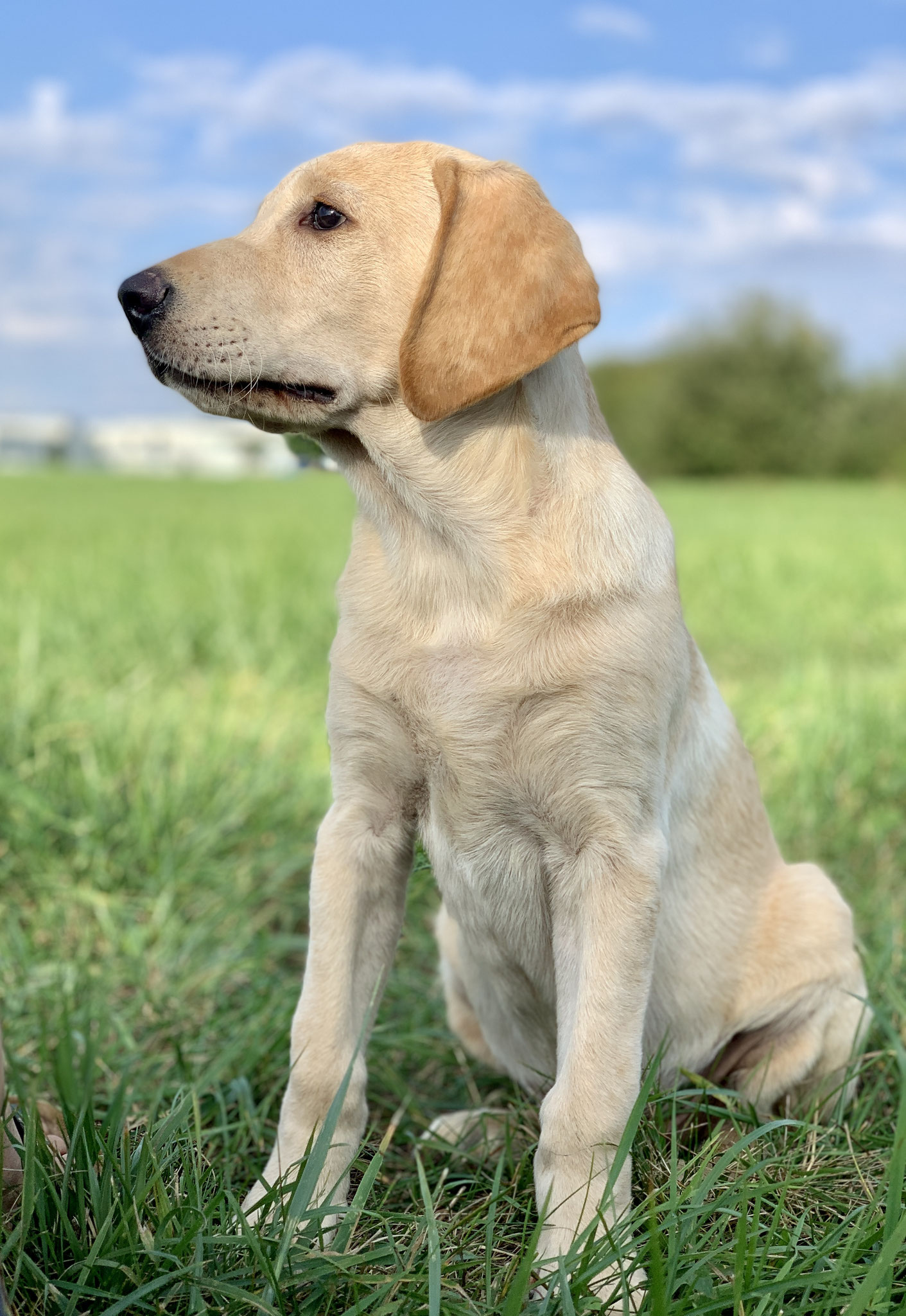 Gunner ist zu einem großen und kräfigen Junghund herangewachsen. Besonders an ihm mag ich seinen lieben Ausdruck. Er hat ein gutes Pigment, dunkle Augen und ein sehr gutes Haarkleid.